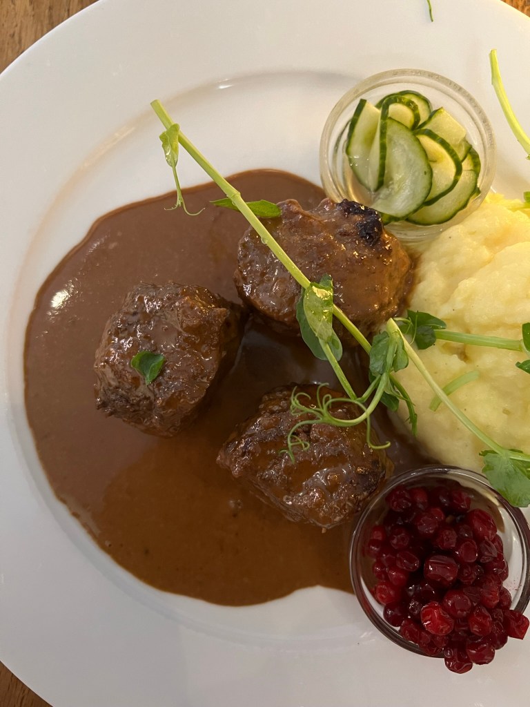 瑞典菜是北歐美食代表之一,融合豐富的口味和多樣的食材。其中,透過宜家家居(IKEA)發揚光大的瑞典肉丸(köttbullar)以香氣四溢、口感細膩而聞名於世。這些小而多汁的肉丸通常搭配著牛油醬汁,以及美味的小紅莓果醬,成為一道瑞典傳統的風味佳餚。此外,鯡魚(herrings)也是一種廣受歡迎的美食,通常經過醃製,並與洋蔥和香草等調料一起食用。不得不提的還有「fika」,瑞典語的大致意思是一起喝咖啡,吃甜點聊天的休憩時刻。這種文化將美食和社交融合,因此不要錯過各式經典糕點,例如肉桂捲。